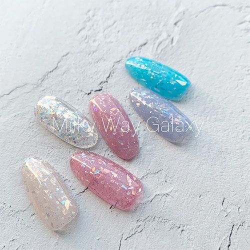 ザク切りのオーロラホロと、さりげない輝きのオーロララメが入っておりうっとりするようなキラキラ感を楽しめます!