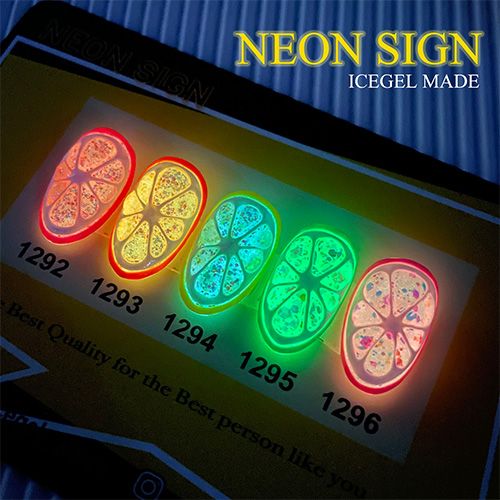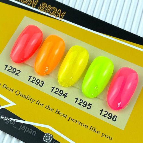 はっきりとしたネオンカラーが暗いところでは発光する夜光カラージェルのシリーズ。