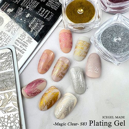 グローパウダーやミラーパウダーがしっかりと密着する程よい未硬化ジェルがあります。