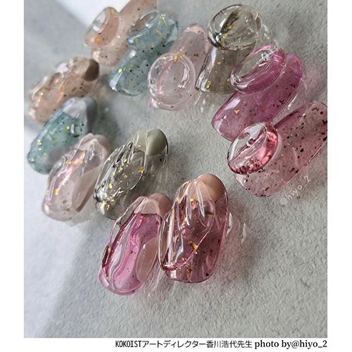 KOKOISTのカラージェルは耐久性・密着力に優れ、美しさが長持ち。鮮やかな発色で、単色塗りはもちろん、アートにも最適です。