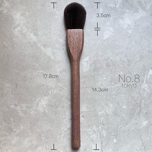 Sサイズは平筆型になっており刷毛部分はダークブラウンの単色毛になっております。
