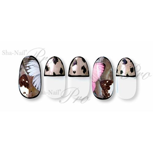ジェルネイルと同じく紫外線でインクを硬化させる最先端のUVプリントを採用し、1点1点の絵柄の周囲を精密にカットしました。