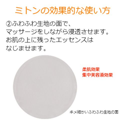 肌トラブルを鎮めて潤いを与える濃密美容液ミトン。ミトンに含まれたたっぷりの美容液が優しくお肌に浸透します。