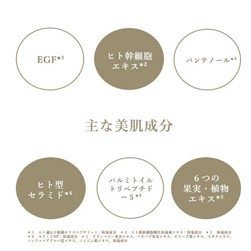 成分には人気の『ヒト幹細胞エキス』をはじめ、EGF(再生)・ヒト型セラミド(肌バリア)・パルミトイルトリペプチド-5(しわ対策)を配合し、ワンランク上の施術パックを目指しました。