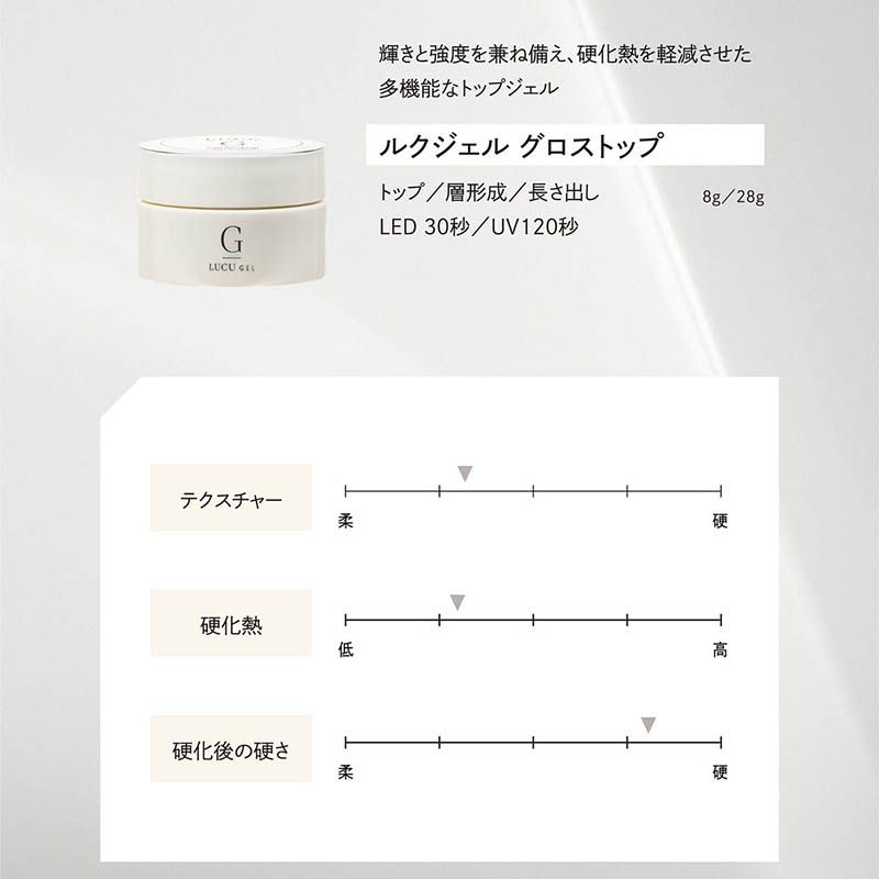 輝き、強度、硬化熱軽減を兼ね備えた多機能なトップジェル。