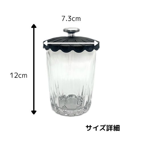 蓋つきのウェットステリライザーの理想形にやっとたどり着いた感じです。商品説明にガラスコップのような~とあったので、ガラスじゃないのかな?と思いましたが、ガラス製でエタノールで変質する心配もなし!お勧めです。