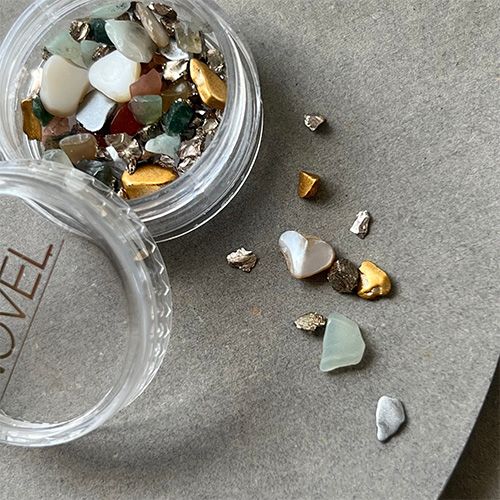 クロムカラーのクラッシュや様々なストーン、シェルがmixされた個性的なアイテムです。