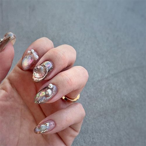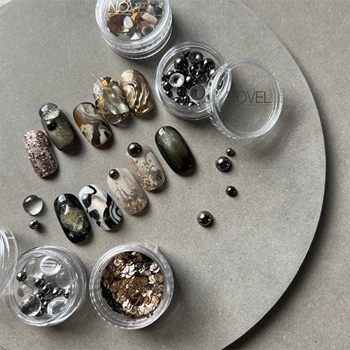 クリアパーツは下に仕込んだグリッターやオーロラフレークなどの輝きを活かしてくれます。