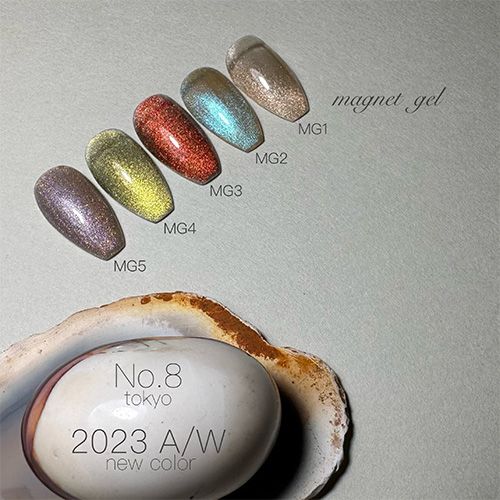 極小の細かい粒子が強いイエローに光り、奥から強く光らせることができるマグネットジェルです。