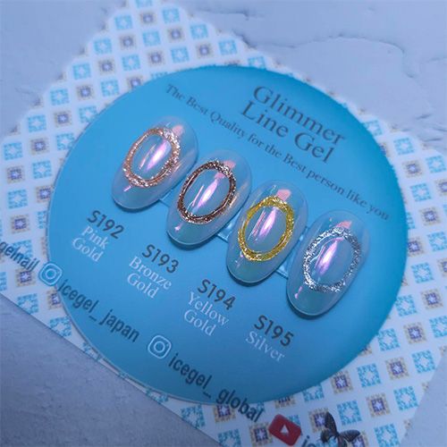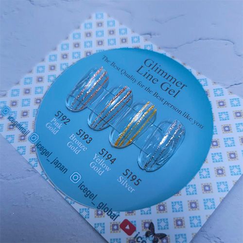 細かいラメがぎっしり入っていてラインを引いてもしっかり発色するのはもちろんですがワンカラーやグラデーションとサロンワークで大活躍すること間違いないジェルシリーズです。