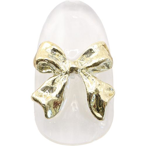 金属製のかわいらしい、立体的なリボンパーツです。 美しい状態を保つ為にジェルでのコーティングを推奨致します。
