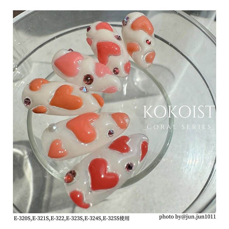 KOKOISTのカラージェルは耐久性・密着力に優れ、美しさが長持ち。鮮やかな発色で、単色塗りはもちろん、アートにも最適です。