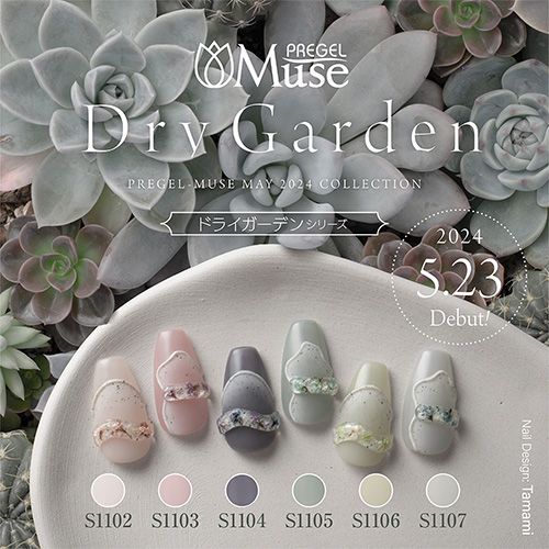 今回のミューズ「ドライガーデンシリーズ」は絶妙な透け感とこなれ感のあるくすみカラー6色です。