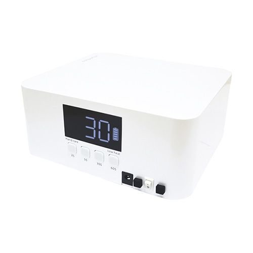 ※ビルダージェル使用時の仮硬化の2秒設定の硬化で熱を感じる方は、60秒タイマー設定の状態で2秒ずつ仮硬化をしてください。硬化熱を感じにくくなります。