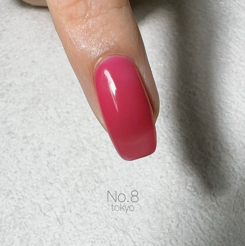 パキっとしたピンクですが、シアーのため重くなりすぎないカラーです。