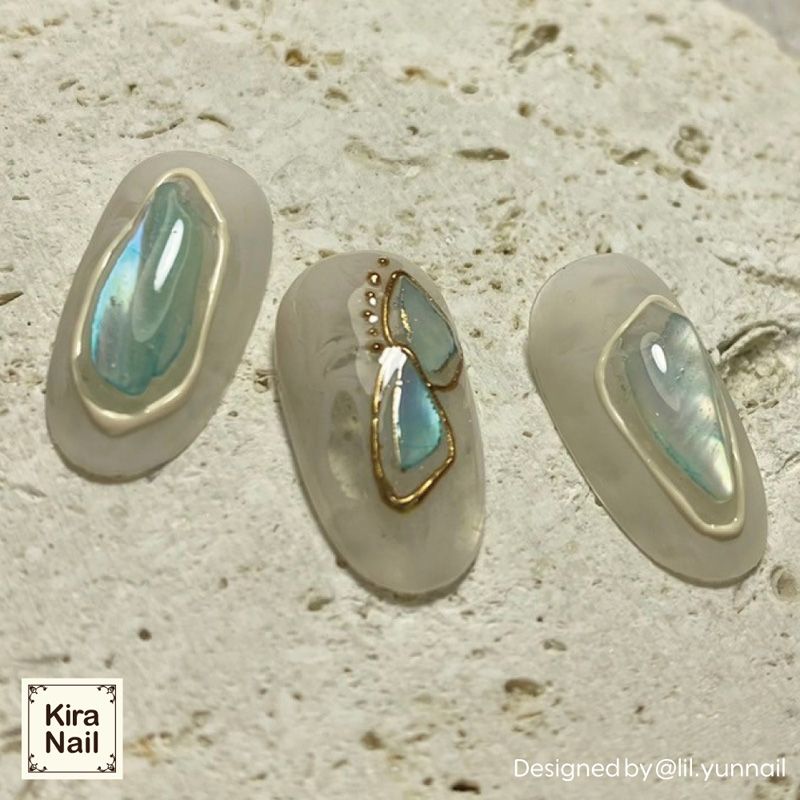 角のないまるみのある少し大きめのシェル。シェルの周りをミラーで縁どったりして、個性的ななシェルパーツとしてご使用頂くのがおすすめです。