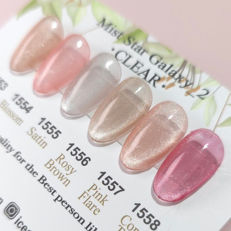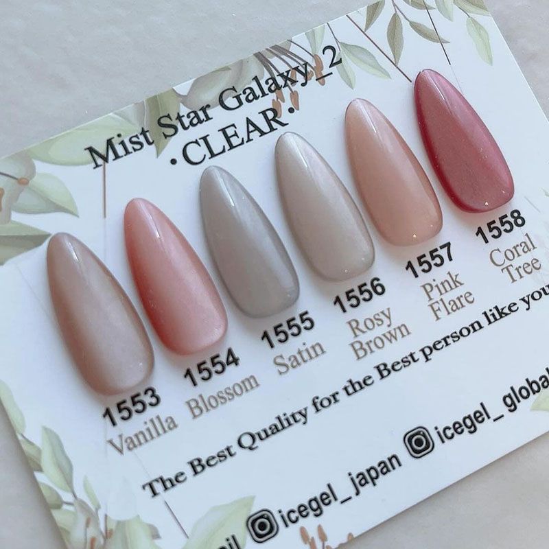 カラージェルをレイヤードして使うと、さらに透明で輝きのあるネイルに仕上がります。