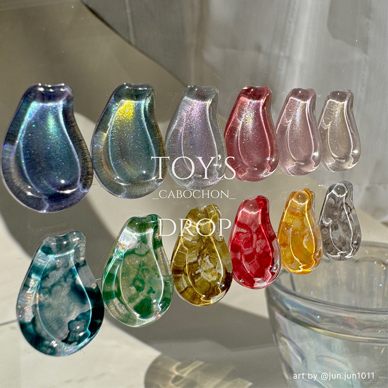 ご使用の際はカボションを1つずつ切り離してご使用ください。稀に衝撃により、カボションが外れてしまう場合がございますが、問題なくご使用いただけます。乳幼児の手の届かないところで保管してください。ビーズ表面(塗布面)に細かい傷がある場合がございます。この理由による返品・交換は致しかねますのであらかじめご了承ください。アセトン等の溶剤を使用すると白濁しますのでご注意ください。