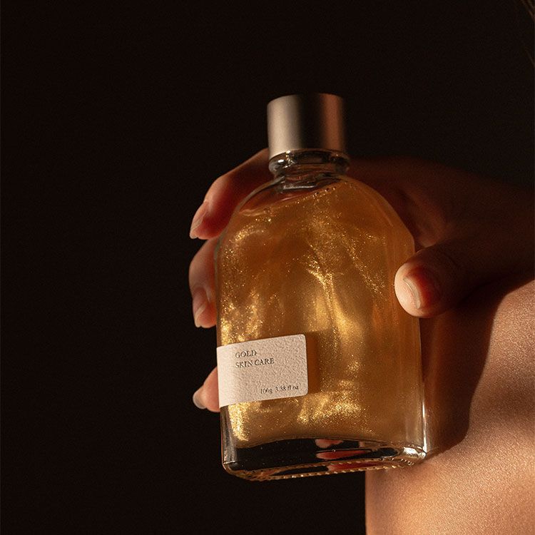 ジェルタイプなのでベタつかず、暑い日や湿度の高い日でも快適にお使いいただけ、ゴールドグリッターの輝きが、プールサイドやパーティーの場でお肌を華やかにドレスアップします。