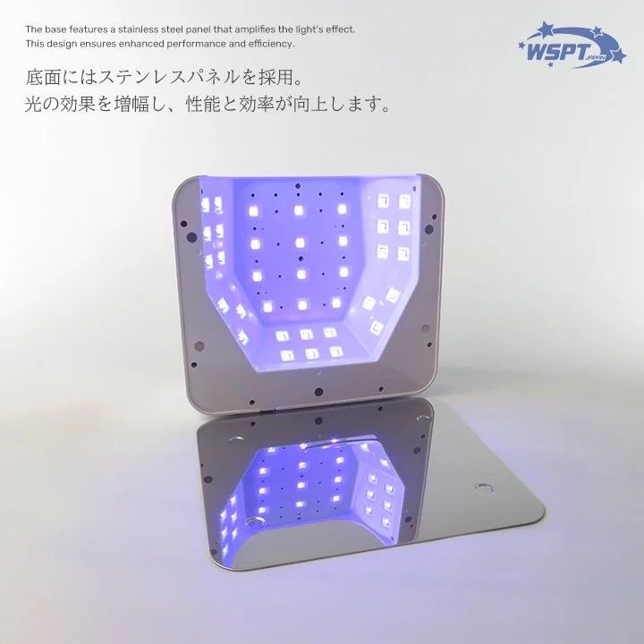 ●底板がステンレス製ですので、LEDを反射させ硬化力アップ!また、マグネット脱着ですので、お掃除もラクラク!