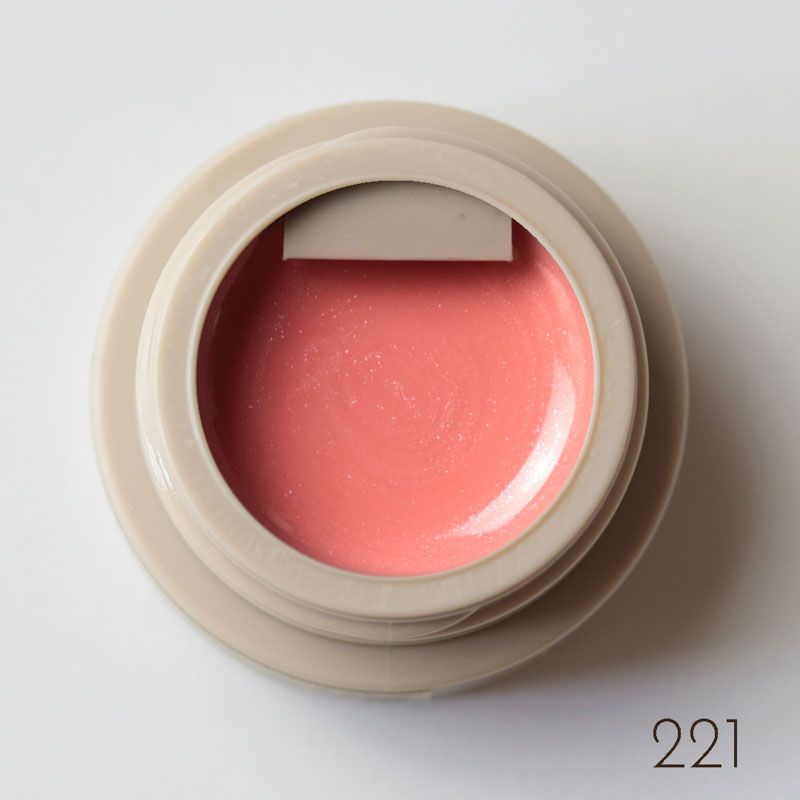 やや透明感のある色で、微粒子ラメの入った優しい印象のカラー