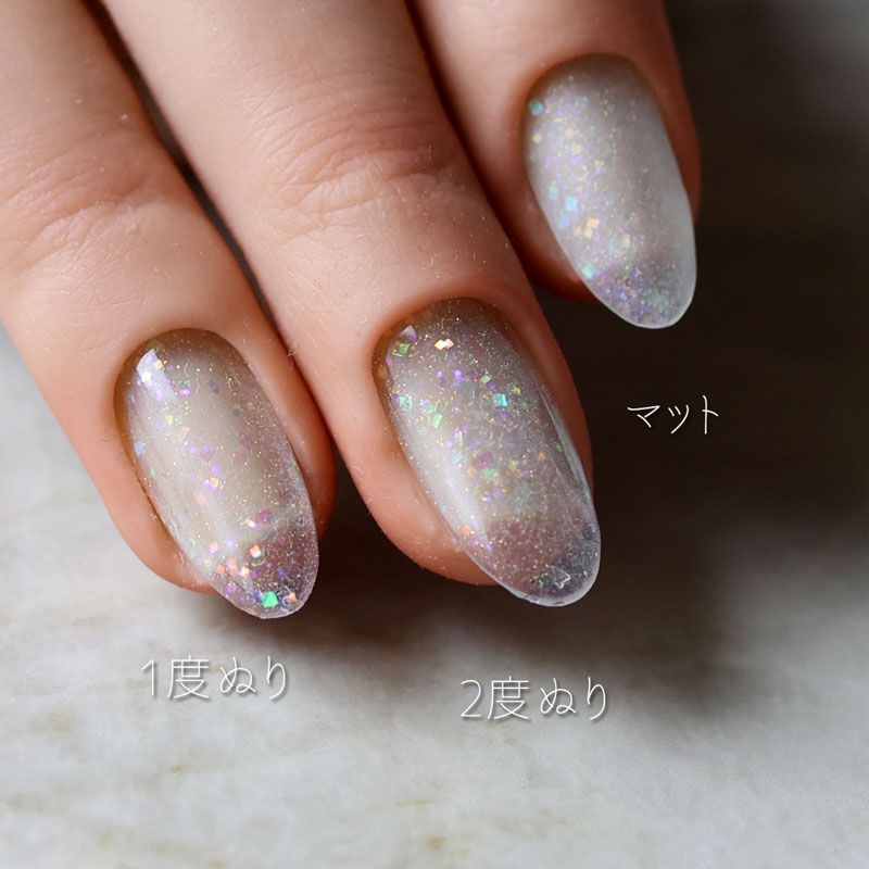微粒子と大粒がミックスしたオーロラで華やかな印象に。