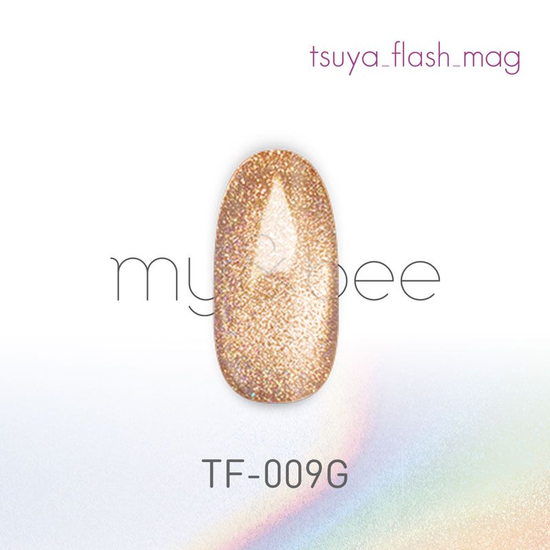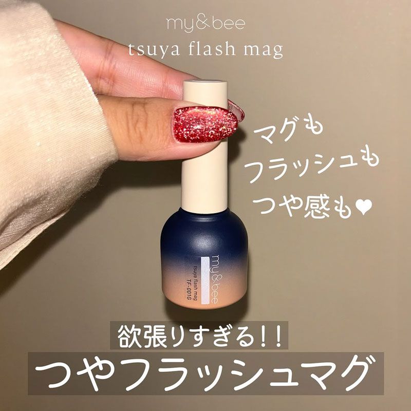 オレンジブラウンベースに七色のラメとフラッシュ+つや感のあるマグ