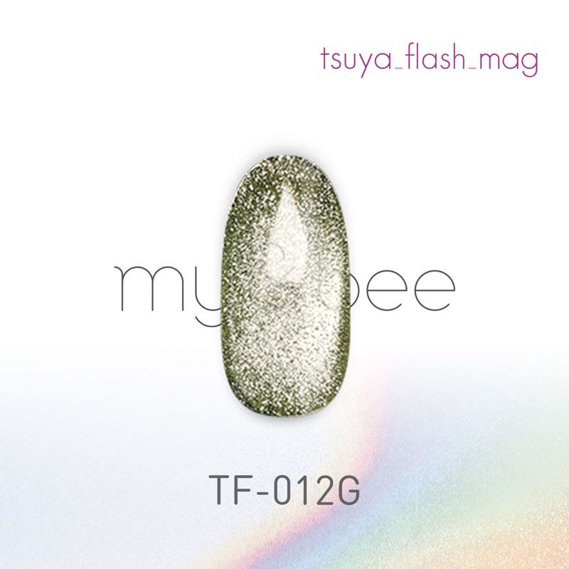 落ち着いたモスグリーンベースに七色のラメとフラッシュ+つや感のあるマグ