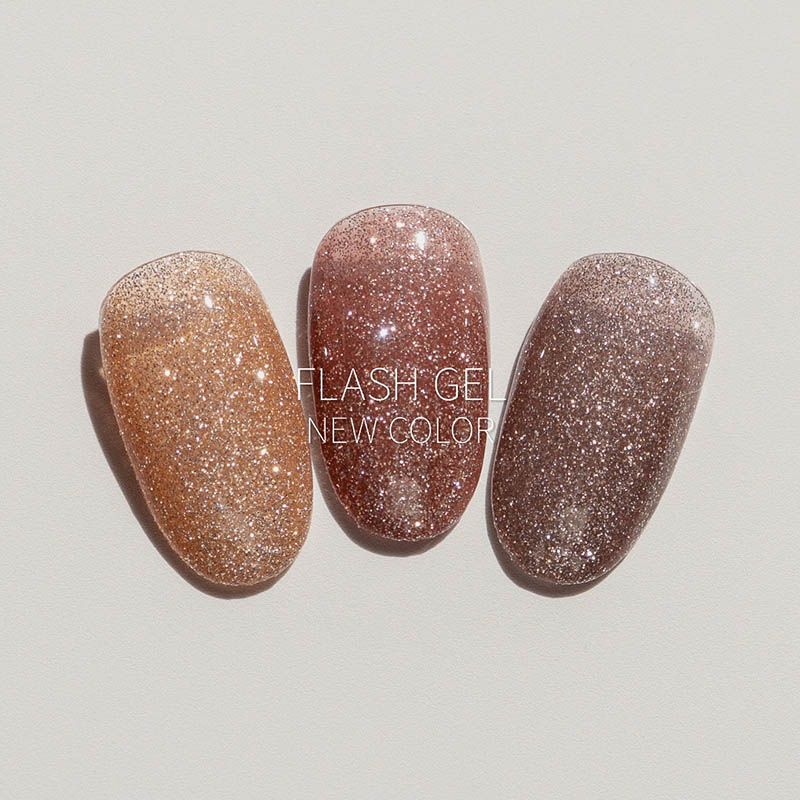 宝石を表現する為、従来のフラッシュジェルよりグリッターの量を増やして濃密な輝きに。
