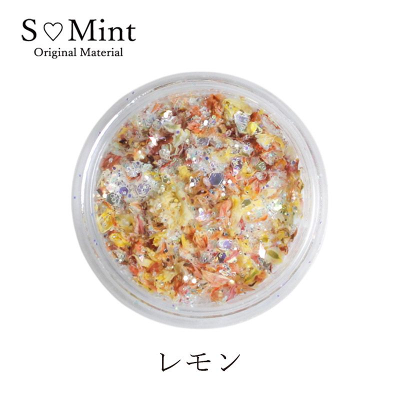 キラキラと輝く大きさが異なるクリアグリッターに鮮やかなカラーのフラワーが混ざっていてラメだけでは出せない彩りの豊かさとジューシー感を演出してくれます