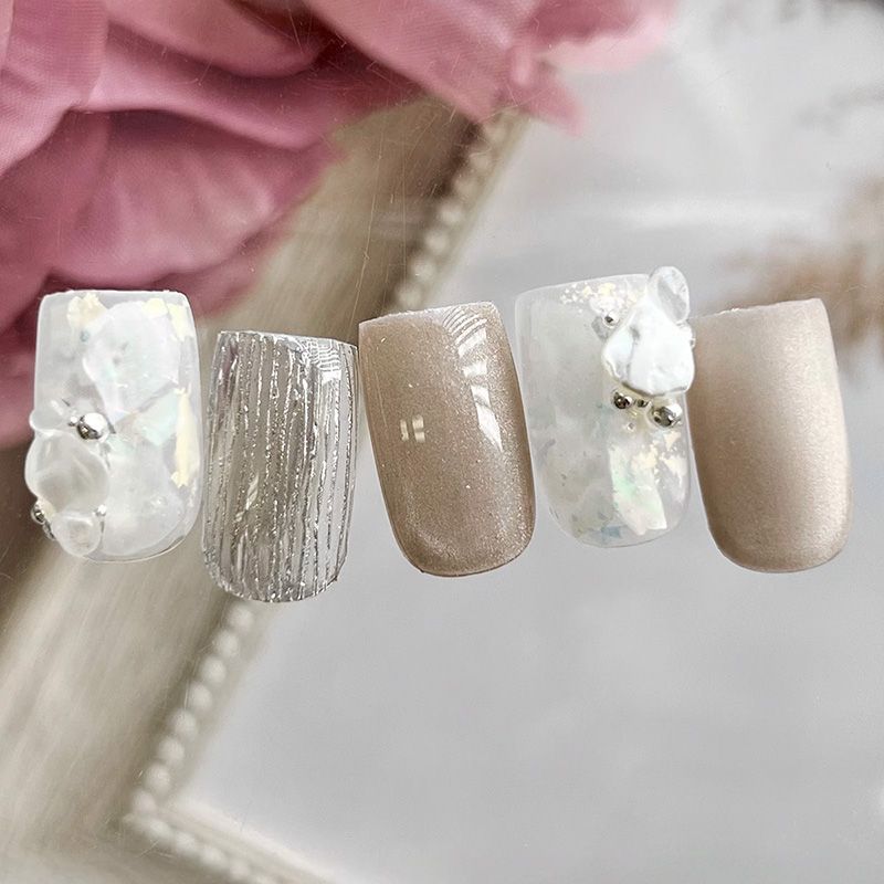 くすみの中にほんのりピンクの春らしい色合いに シルバーのマグネットパウダーがふんわりと浮き上がる 美しいカラーに仕上がりました。
