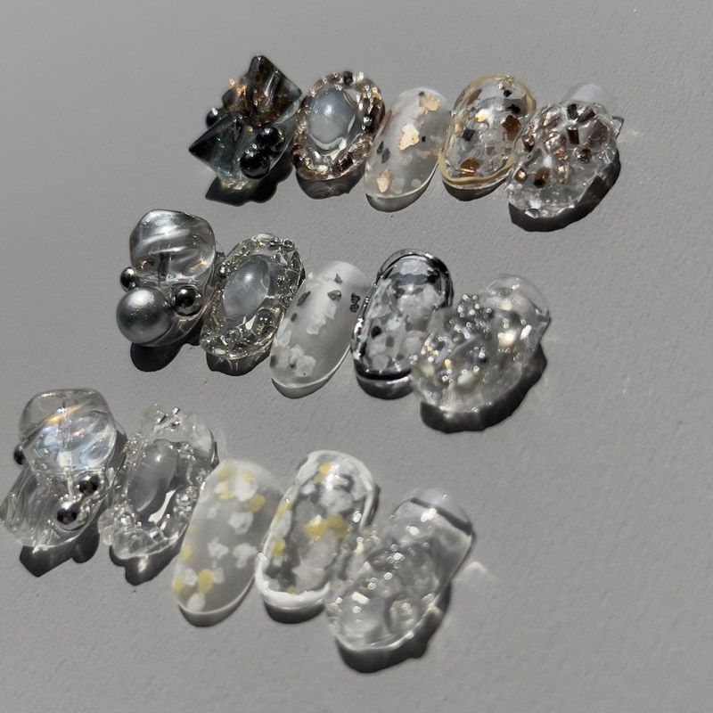 細かなフレークの為、不揃いな存在感がありながらも埋め込みやすいアイテムです。