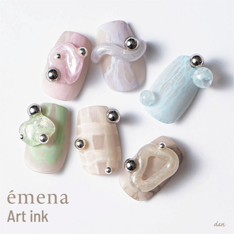 速乾性タイプでレイヤーアートもしやすく、インクを塗布した後にトップジェルでコーティングをする際インクを引きずることがありません。
