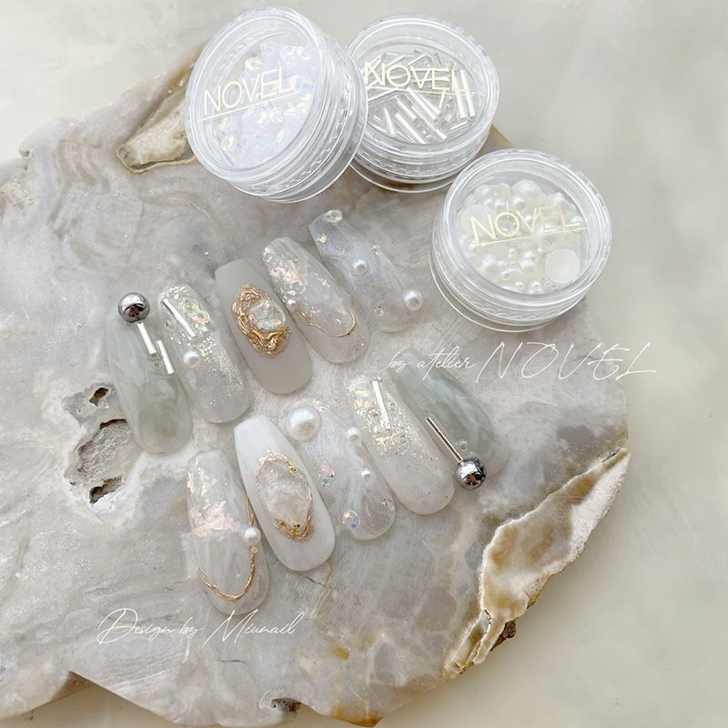 2mm、3mm、4mm、6mmの半球型パールmixです。