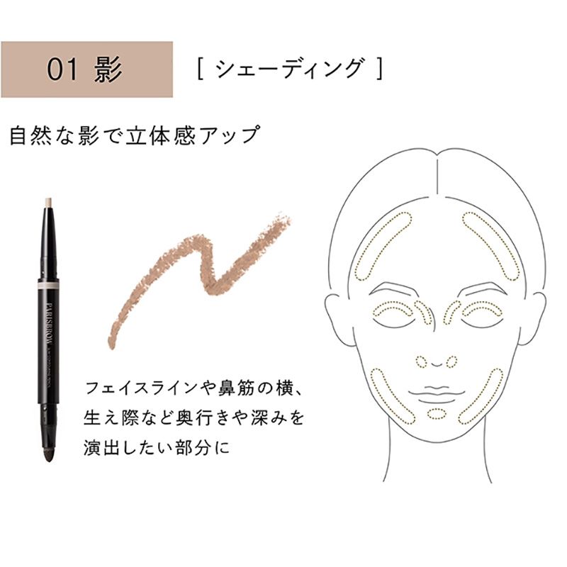 01 影 フェイスラインや鼻筋の横、生え際など奥行きや深みを演出したい部分に