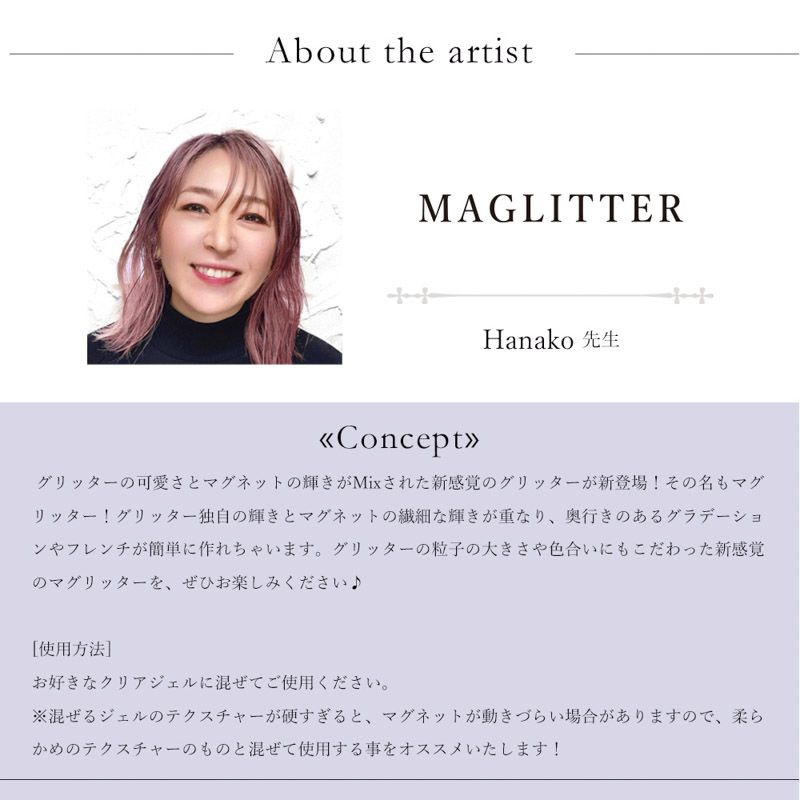 グリッターの粒子の大きさや色合いにもこだわった新感覚のマグリッターを是非お楽しみください。
