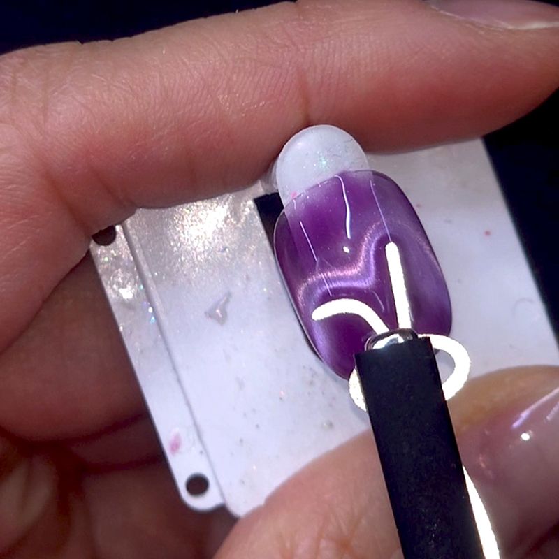 強力な磁石にくっつけて、スターギャラクシージェルを塗布して硬化前に近づけてください。