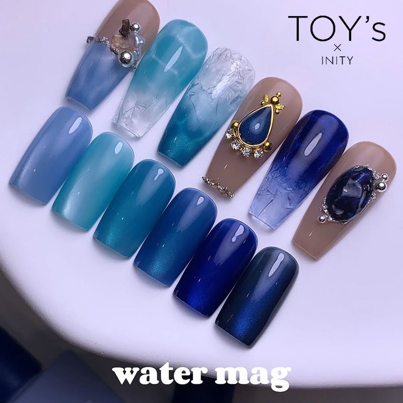 自爪が透けすぎないシアーなブルーカラーベースに奥行き感を出してくれる微粒子マグ