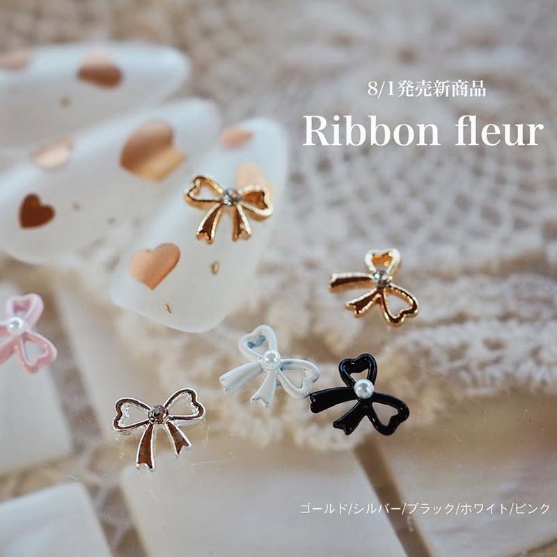 かわいいシェープのリボンの真ん中にパールが置いてあり、小さいながらインパクトがあります。