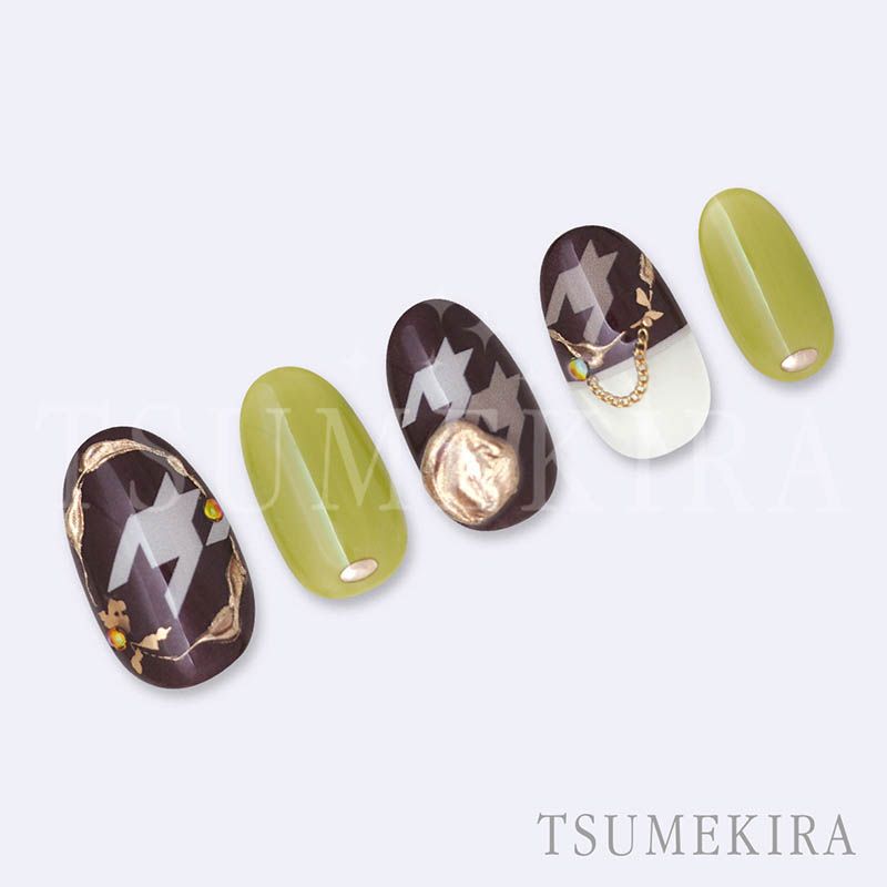 大きめ2サイズの千鳥格子柄で、指先にしっかりと存在感をプラス。