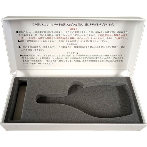 特に刃の先端部分はデリケートな上、開閉についても綿密な調整を施してあります。お取り扱いに十分にご注意ください。