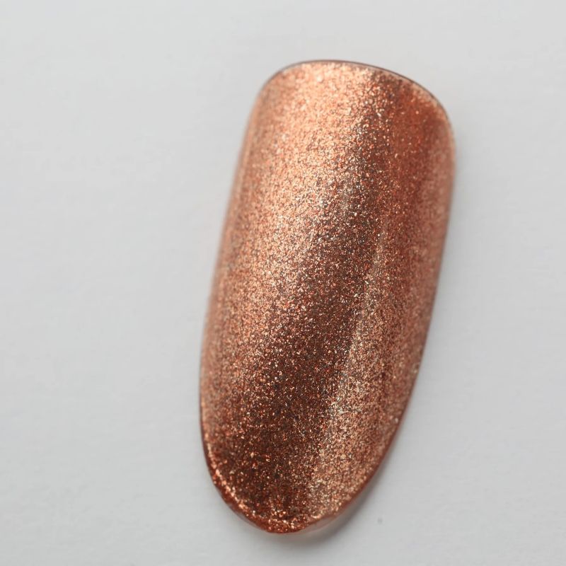 銅色のようなカラーでラメぎっしりで綺麗でした。ベタ塗りしても、派手すぎすいい感じです!